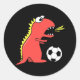 Pegatina Redonda Funny Personalizado Dinosaurio jugando al fútbol n