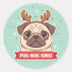 Pegatina Redonda Funny Pug Reindeer Holiday Sticker