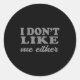 Pegatina Redonda Funny Quotes I Don't Like Me Either Sarcastic Gift