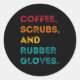 Pegatina Redonda Funny Retro Coffee Scrubs Rubber Gloves Nurse Doct