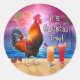 Pegatina Redonda Funny Rooster Cocktails Tropical Beach Sea