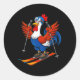 Pegatina Redonda Funny Rooster Skiing Adventure Cartoon