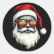 Pegatina Redonda Funny Santa Face Retro Sunglasses Christmas