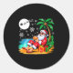 Pegatina Redonda Funny Santa Sungles Drinking Coconut On Beach Chri