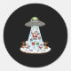 Pegatina Redonda Funny Santa Ufo Delivery Happy Reindeer Snowman Ch