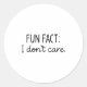 Pegatina Redonda Funny Sarcastic Fun Fact I Don't Care Saying For W