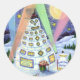 PEGATINA REDONDA FUNNY SNOWMAN HOTEL, LUCES DEL NORTE Y PENGUINOS
