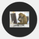 Pegatina Redonda Funny Thinking Monkey Meme Office Curious Ape Brai