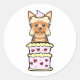 Pegatina Redonda Funny yorkshire terrier saltando de un pastel
