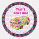 Pegatina Redonda furgoneta hippie cómo rollo con corazones groovs