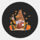 Pegatina Redonda Fútbol Gnome Thankding Autumn Fall Season Boy