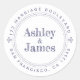 Rústica, moderna y sencilla vuelta boda se dirige al pegatina redondo clásico con el texto el futuro Sr. y la Sra. en tipografía elegante azul marino sobre un fondo blanco adornado con detalles decorativos. Simplemente agrega tu nombre y dirección. Diseñado exclusivamente para usted por Happy Dolphin Studio. Si necesita ayuda o productos coincidentes, póngase en contacto con nosotros en happydolphinstudio@outlook.com. ¡Estamos encantados de ayudarle a hacer de su boda el día más hermoso!