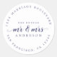 Moda, boda moderno y simple retorno se dirige al pegatina redondo clásico con el texto el futuro Sr. y la Sra. en el elegante guión azul marino sobre un fondo blanco. Simplemente agrega tu nombre y dirección. Diseñado exclusivamente para usted por Happy Dolphin Studio. Si necesita ayuda o productos coincidentes, póngase en contacto con nosotros en happydolphinstudio@outlook.com. ¡Estamos encantados de ayudarle a hacer de su boda el día más hermoso!
