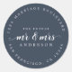 Moda, boda moderno y simple retorno se dirige al pegatina redondo clásico con el texto el futuro Sr. y la Sra. en blanco elegante guion sobre un fondo azul oscuro. Simplemente agrega tu nombre y dirección. Diseñado exclusivamente para usted por Happy Dolphin Studio. Si necesita ayuda o productos coincidentes, póngase en contacto con nosotros en happydolphinstudio@outlook.com. ¡Estamos encantados de ayudarle a hacer de su boda el día más hermoso!