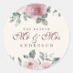 Pegatina Redonda Futuro Sr Sra Floral Polvoriento Rosa Burdeos Marf