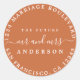 Moda, retorno boda moderno y simple se dirige al pegatina redondo clásico con el texto el futuro Sr. y Sra. en caligrafía de escritura blanca elegante y tipografía elegante sobre un fondo naranja quemado. Simplemente agrega tu nombre y dirección. Diseñado exclusivamente para usted por Happy Dolphin Studio. Si necesita ayuda o productos coincidentes, póngase en contacto con nosotros en happydolphinstudio@outlook.com. ¡Estamos encantados de ayudarle a hacer de su boda el día más hermoso!