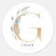 Letra G monograma floral. Letra G en textura marrón dorada acentuada con hojas de compuestos de acuarela verde, flores y polvo de oro. Personalizado con el nombre en el tipo de letra coincidente.