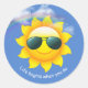 Pegatina Redonda Gafas de sol en sol amarillo en el cielo con cita