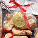 Pegatina moderna de falso oro para galletas caseras para perros hechas con amor para esta temporada navideña.