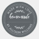 Rústico, moderno y simple etiqueta de frasco de galletas caseras o envasado de mermelada con el texto casero, hecho con amor y tu nombre en caligrafía y tipografía blanca manuscrita estilizada sobre un fondo negro opaco. Simplemente agrega tu nombre a la etiqueta. Escribe los nombres de los productos en las etiquetas cuando tus productos estén listos. ¡Diseñado exclusivamente para ti por Happy Dolphin Studio!