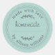 Etiqueta rústica de productos horneados caseros o de frasco de conservas con el texto casero, hecho con amor y tu nombre en tipografía moderna sobre fondo azul pastel. Simplemente agrega tu nombre a la etiqueta. Puedes escribir los nombres de los productos en las etiquetas cuando se realicen. Diseñado exclusivamente para ti por Happy Dolphin Studio. Si necesitas ayuda o productos a juego, por favor contáctanos en happydolphinstudio@outlook.com.