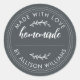 Etiqueta rústica, moderna y simple para productos horneados caseros o tarro de conservas con el texto casero, hecho con amor y tu nombre en caligrafía y tipografía blanca estilizada a mano sobre un fondo negro mate. Simplemente agrega tu nombre a la etiqueta. Escribe los nombres de los productos en las etiquetas cuando tus productos estén listos. ¡Diseñado exclusivamente para ti por Happy Dolphin Studio!