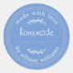 Pegatina de enlatado de productos horneados caseros rústicos o de mermelada con el texto casero, hecho con amor y su nombre en tipografía moderna sobre un fondo azul de aciano. Simplemente agregue su nombre a la etiqueta. Puede escribir los nombres de los productos en las etiquetas cuando se realicen los productos. Diseñado exclusivamente para usted por Happy Dolphin Studio. Si necesita ayuda o productos coincidentes, por favor contáctenos en happydolphinstudio@outlook.com.