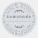 Pegatina de tarro de mermelada o productos horneados caseros rústicos con el texto casero, hecho con amor y tu nombre en tipografía moderna en negro claro sobre un fondo azul pastel. Simplemente agrega tu nombre a la etiqueta. Puedes escribir los nombres de los productos en las pegatinas cuando se hagan. Diseñado exclusivamente para ti por Happy Dolphin Studio. Si necesitas ayuda o productos a juego, por favor contáctanos en happydolphinstudio@outlook.com.