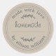 Etiqueta rústica de productos horneados caseros o enlatado de mermelada con el texto casero, hecho con amor y su nombre en tipografía moderna sobre un fondo gris. Simplemente agregue su nombre a la etiqueta. Puede escribir los nombres de los productos en las etiquetas cuando se realicen los productos. Diseñado exclusivamente para usted por Happy Dolphin Studio. Si necesita ayuda o productos coincidentes, por favor contáctenos a happydolphinstudio@outlook.com.
