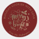 buen pegatina hecho en casa con un guión falso de Relieve metalizado dorado en la tipografía caprichosa "Merry and Bright" con giros decorativos y tu información rodeada de dos fondo de tono terciopelo negro y rojo