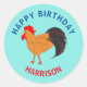 Pegatina Redonda Gallito de dibujos animados de feliz cumpleaños