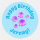 Pegatina Redonda Gallito rosa morado kawaii personalizado