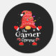 Pegatina Redonda Gamer Gnome - Xmas Video Gamers Christmas Gnomes