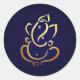 Pegatina Redonda Ganesh | Ganpati | Dios indio Boda hindú Azul