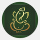 Pegatina Redonda Ganesh | Ganpati | El Dios indio Boda hindú verde