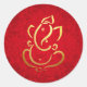 Pegatina Redonda Ganesh | Ganpati | Rojo de damasco de Dios indio