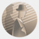 Ilustracion de un hombre del estilo de los años cincuenta con un gorra y un abrigo que acecha en las sombras. Imagen disponible en varios regalos y productos.