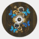 Pegatina Redonda Gases de vapor y mariposas azules