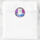 Pegatina Redonda Gatito blanco vintage con flores rosas