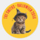 Pegatina Redonda Gatito De Halloween En Favor Del Partido Gorra Bru