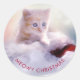 Pegatina Redonda Gatito lindo descansando en un Navidad pobre de Sa