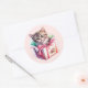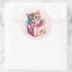 Pegatina Redonda Gatito lindo en un regalo de cumpleaños de caja