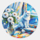 Pegatina Redonda Gato blanco en el umbral de la ventana mirando hac