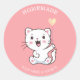 Pegatina Redonda Gato blanco feliz lindo con globo cardíaco casero