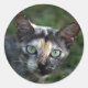 Pegatina Redonda Gato blanco gris marrón con ojos verdes