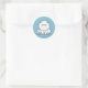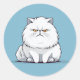 Pegatina Redonda Gato blanco gruñón en un fondo azul