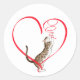 Pegatina Redonda Gato con una cinta cardíaca