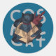 Un gracioso personalizado de un gato astronauta, usando un casco y explorando el espacio en su cohete de la caja de cartón, texto que dice: Gato cósmico