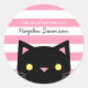 Pegatina con un bonito gato negro y rayas rosas y blancas. Este libro pertenece al pegatina.