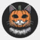 Pegatina Redonda Gato de Halloween, cara de calabaza